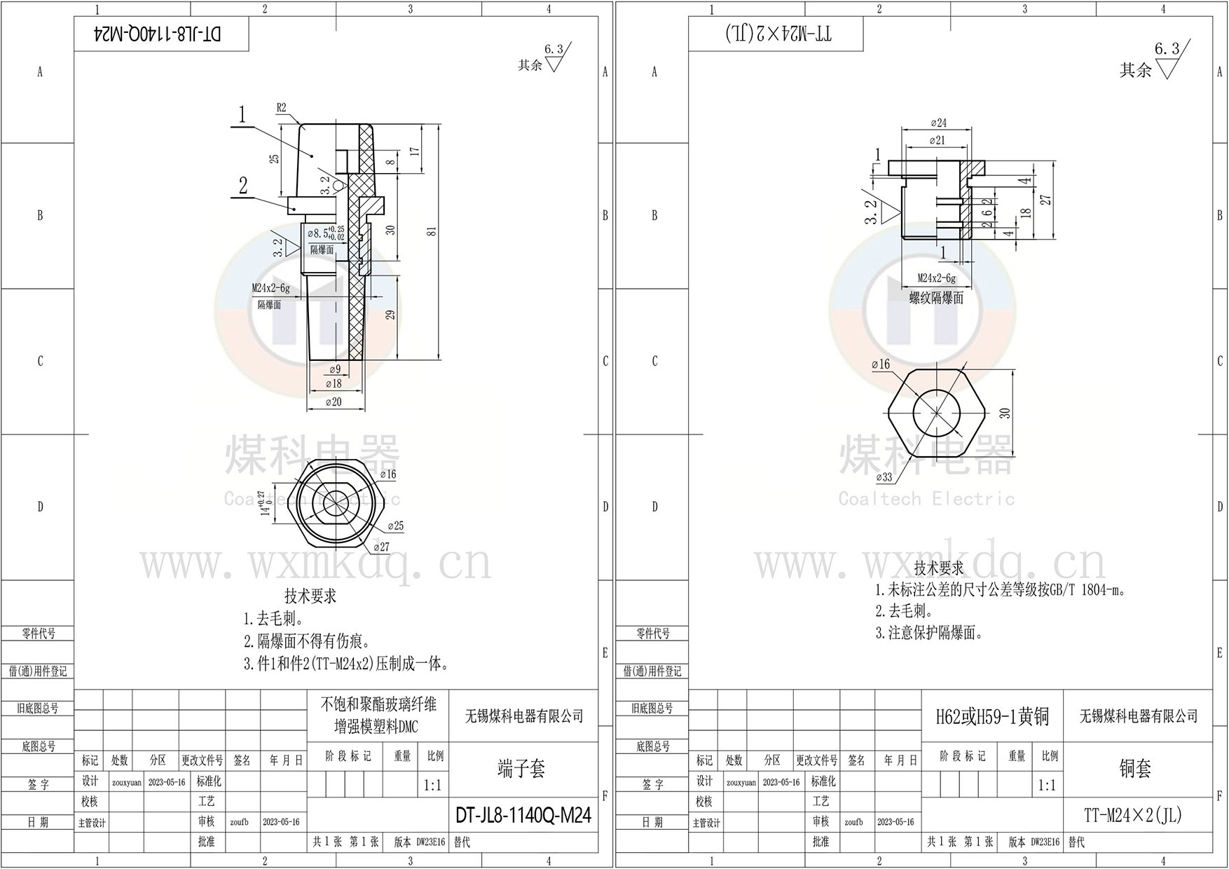 ◆ 安裝尺寸:M24x2 隔爆螺紋;