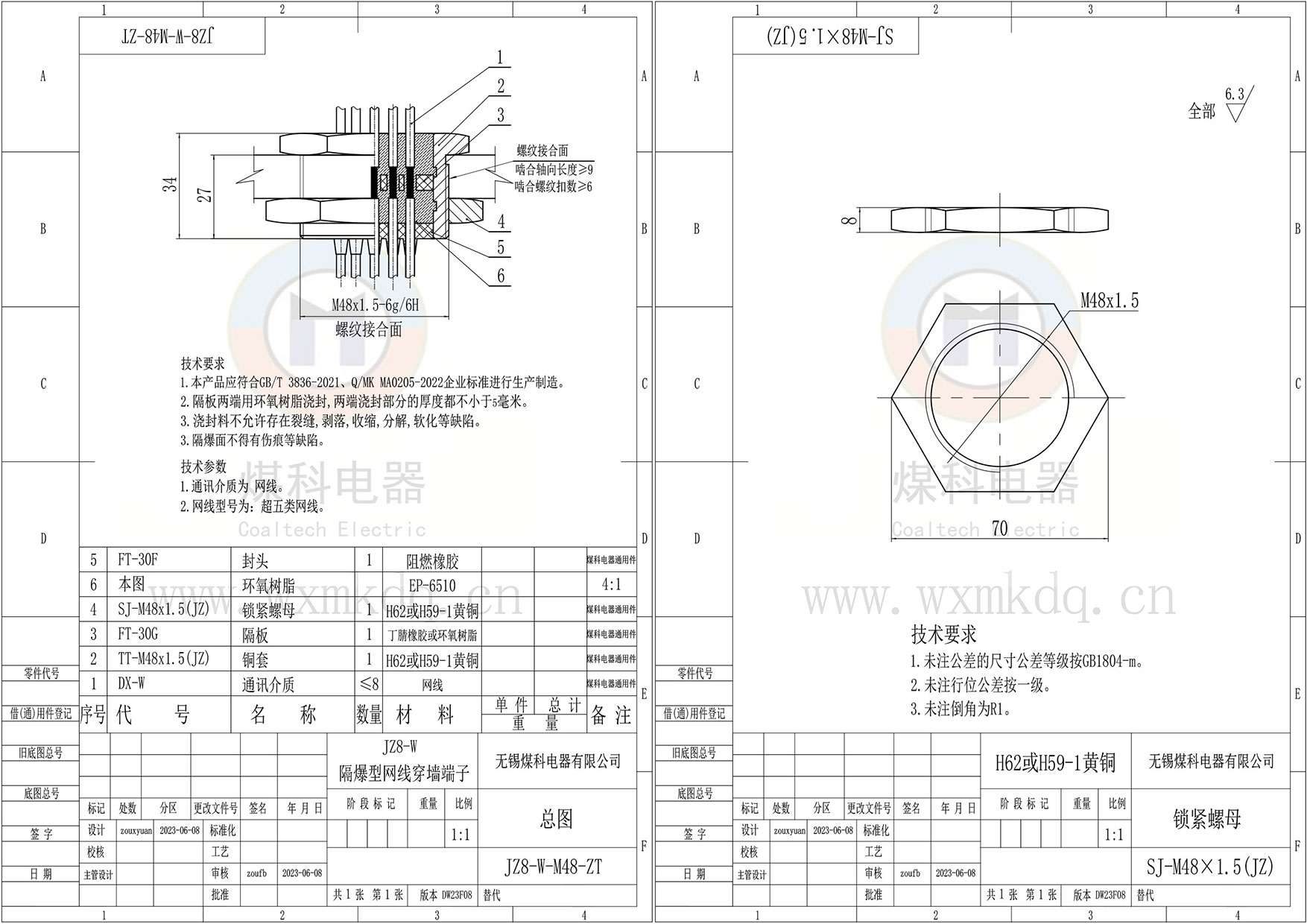 JZ8-W-M48隔爆型網(wǎng)線(xiàn)穿墻端子