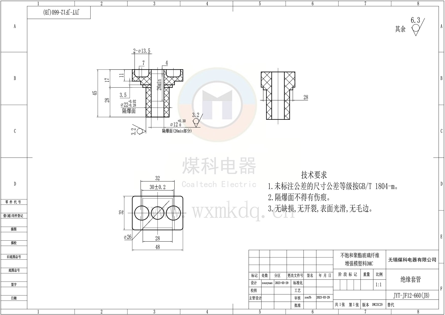 ◆ 絕緣材料:不飽和聚酯玻璃纖維增強模塑料(DMC),通過(guò)火焰燒蝕試驗 !