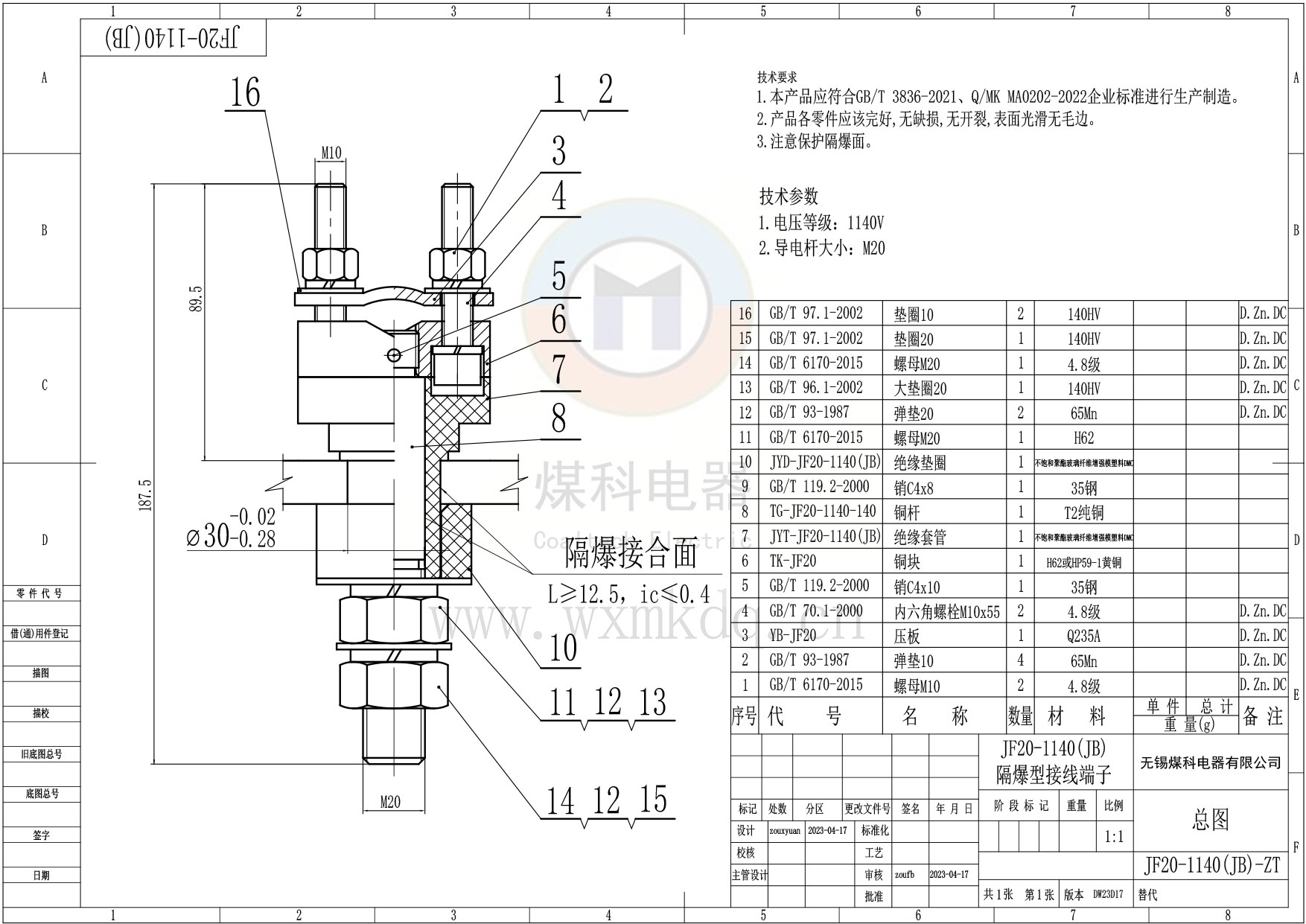 ◆ 電壓等級:1140V,建議使用在電壓≤1140V的場(chǎng)所;