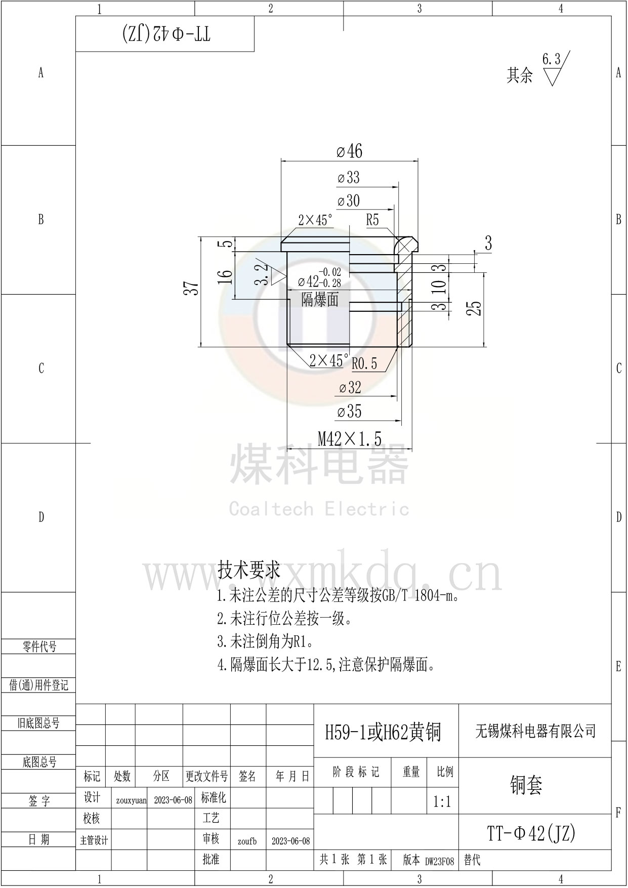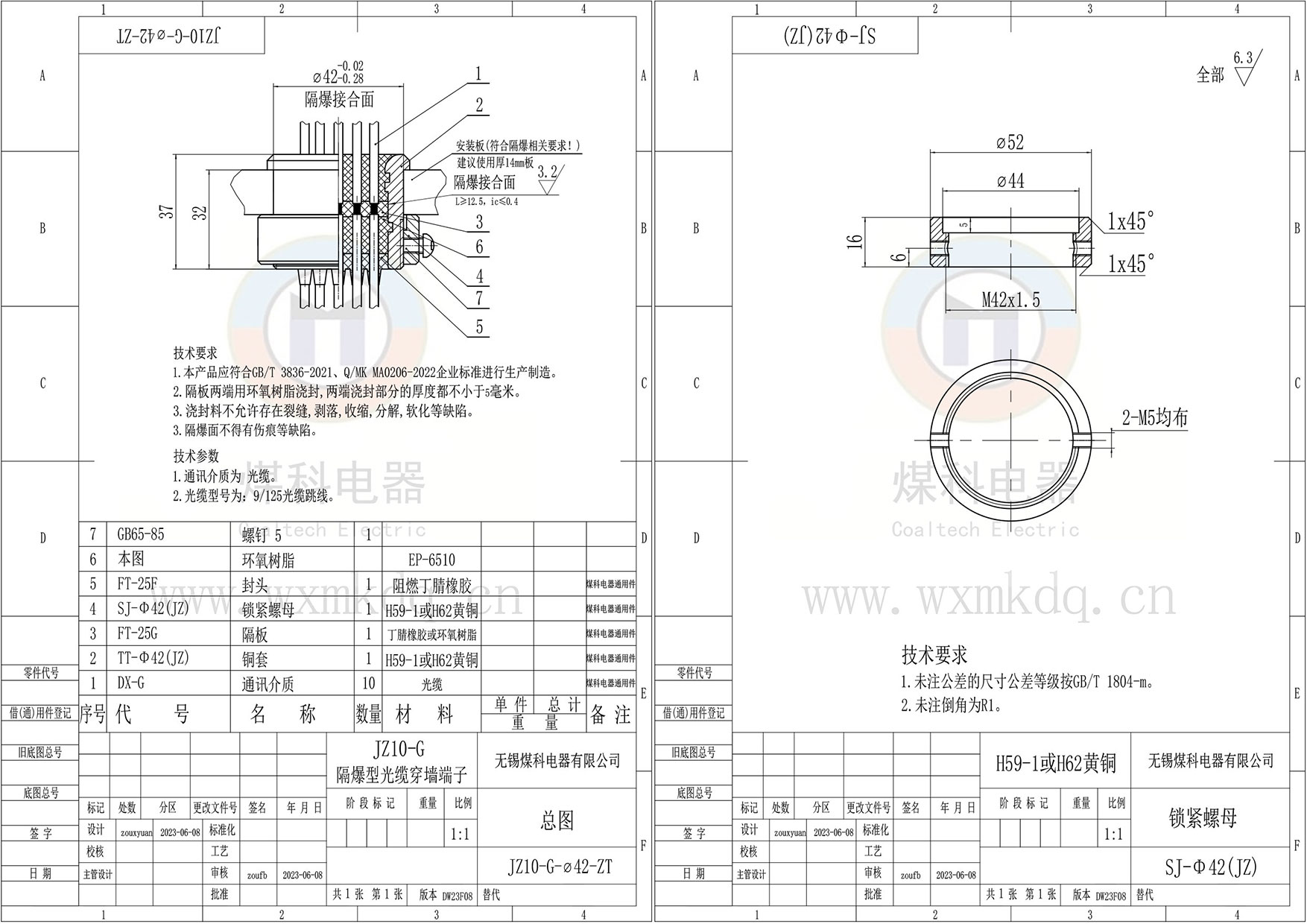 (1)隔爆面安裝銅套;(2)芯數;(3)光纖及接頭規格;(4)上端(法蘭側)預留多長(cháng);(5)下端(鎖緊螺母側)預留多長(cháng)。