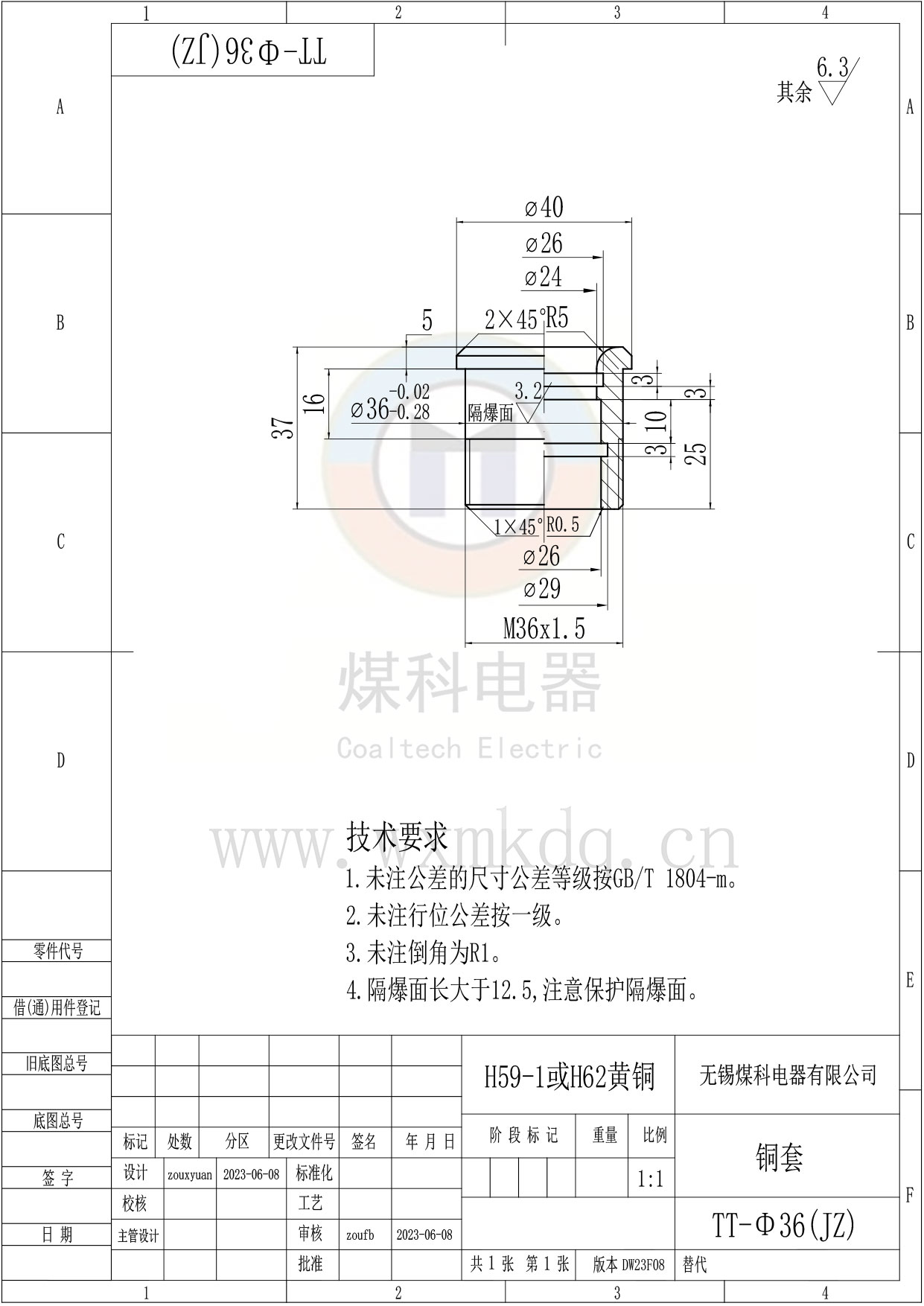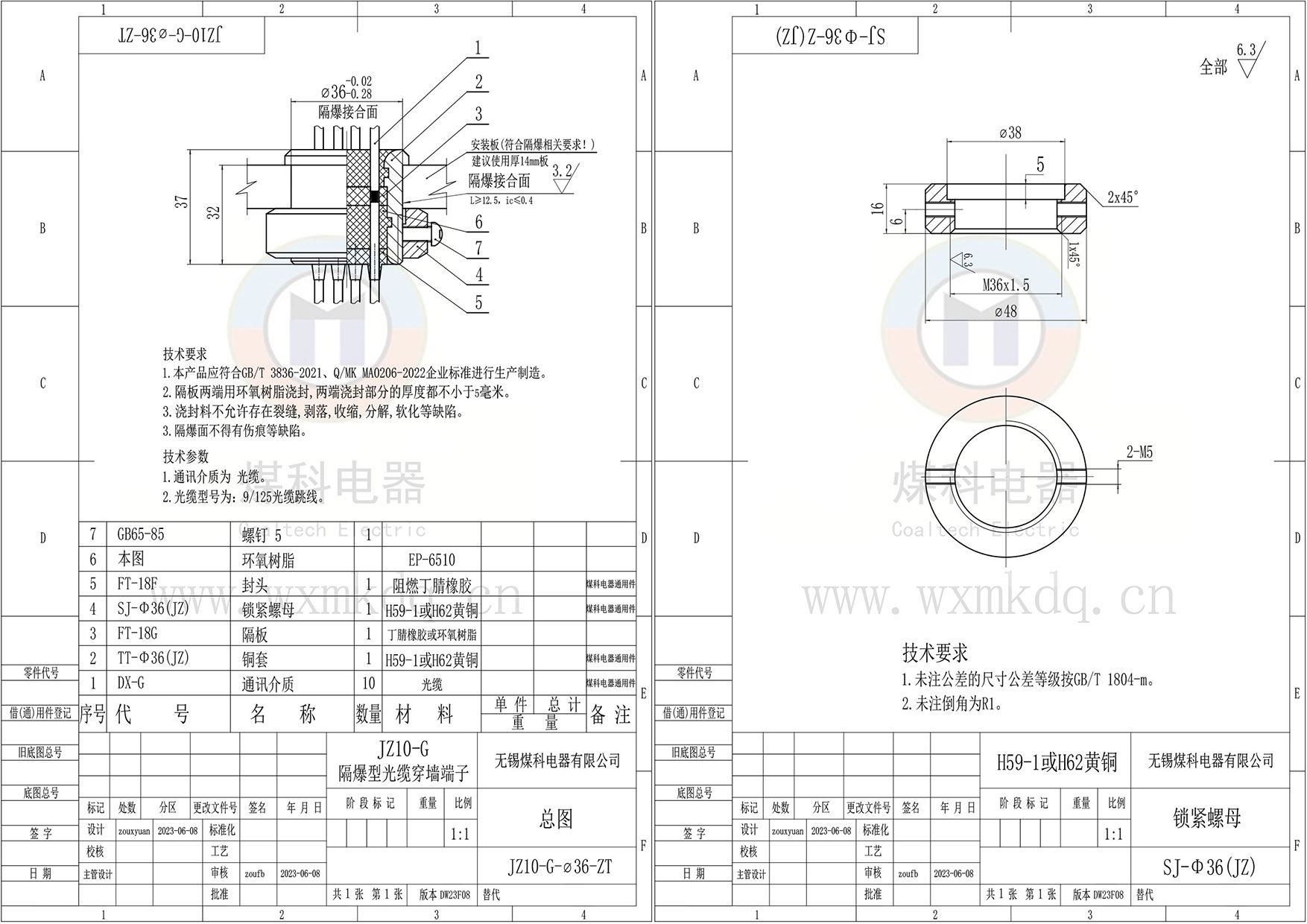 (1)隔爆面安裝銅套;(2)芯數;(3)光纖及接頭規格;(4)上端(法蘭側)預留多長(cháng);(5)下端(鎖緊螺母側)預留多長(cháng)。